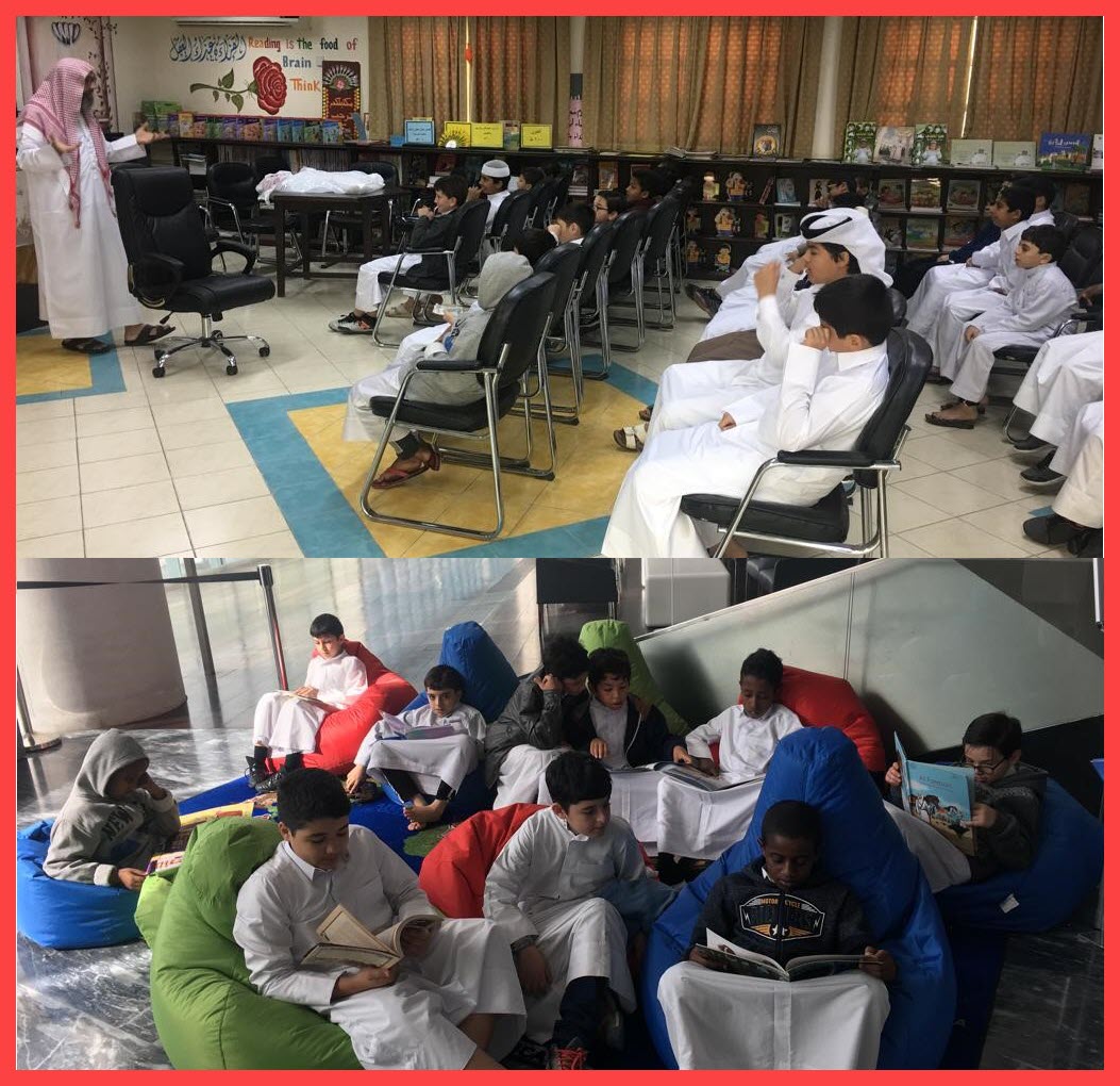 وفي هذا يقول الإمام الرباني عبد العزيز بن باز - رحمه الله - : ( حب القراءة من النعيم المعجل للإنسان في الدنيا ) ، وفوائد اعتياد القراءة أظهر من أن تعد وأكثر من أن تحصى ، لذلك كان نشاط المكتبة ، والذي جاء امتدادًا لقيمة محبة العلم وإثراء لها ، اجتمع الطلاب من خلاله كل يوم في الفرصة يقرؤون ويناقشون ، يلخصون ويسجلون ، وقد بدأ النشاط في مرحلته الأولى بتركيز القراءة عن علماء الحضارة الإسلامية تزامنًا مع قيمة محبة العلم ، بلغ عدد النواة الأولى من الطلاب عشرًا ، وقد قاموا بتسجيل بعض الحلقات عن علماء المسلمين ، ابن الهيثم ، وابن النفيس ، والحلقة الأولى من الشافعي ، وابن الشاطر ، والإمام البخاري ، وابن الجوزي ، والزهراوي ، وكانت المرحلة الثانية وهي الإعلان عن مسابقة ( قارئ اليوم ... عالم الغد ) بداية المنتصف الثاني شارك من خلالها ثلاثون طالبًا لمدة شهرين يومي الأحد والثلاثاء من كل أسبوع ، تركزت عن علماء المسلمين في شتى العلوم والفنون الشرعية منها والطبيعية ، بحيث يقوم الطالب باستعارة قصتين في الأسبوع يقوم بتلخيصهما ، كما تمت مناقشة بعض المعاني الهامة مع الطلاب من خلال الاجتماعات الأسبوعية ومنها : أهمية القراءة ، وكيفيتها ، وكيفية صناعة العلماء والعظماء ومحاولة استجلاء أسباب النبوغ من سيرهم لترسم طرقهم والسير على نهجهم املًا في بعث حضاري إسلامي مرتقب .